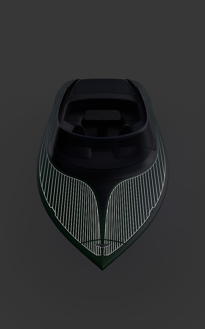 The front deck features a sculpted pattern that evokes a pair of soaring wings—an elegant nod to Bentley’s iconic Flying B. This dynamic motif not only reinforces the brand's identity but also enhances the sense of motion. Flowing seamlessly into the sweeping windshield, the design creates a powerful forward thrust, capturing the spirit of Grand Touring on water.